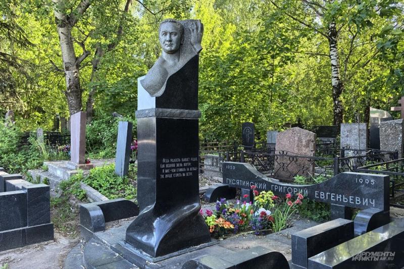 Следом расположена могила бывшего сотрудника КГБ Григория Гусятинского по прозвищу Гриша Северный, он стал жертвой свой борьбы за власть в Ореховской группировке после убийства Сильвестра. Его убили в 1995-м. От бюста Гусятинского с печатью интеллекта на лице веет холодной безжалостностью убийцы. На памятнике выбиты стихи Есенина: «Ведь радость бывает редко, как вешняя звень поутру, и мне — чем сгнивать на ветках — Уж лучше сгореть на ветру». Идеальная эпитафия для бандита.