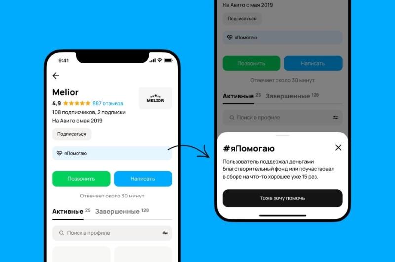 Авито запустил на платформе бейдж #яПомогаю. Такой значок уже появился в профилях 782 тысяч пользователей. Он будет отображаться в аккаунтах людей, которые поддержали деньгами благотворительные фонды или приняли участие в других целевых сборах, организованных компанией. При этом в описании к значку у каждого человека будет обозначен его личный вклад в добрые дела.