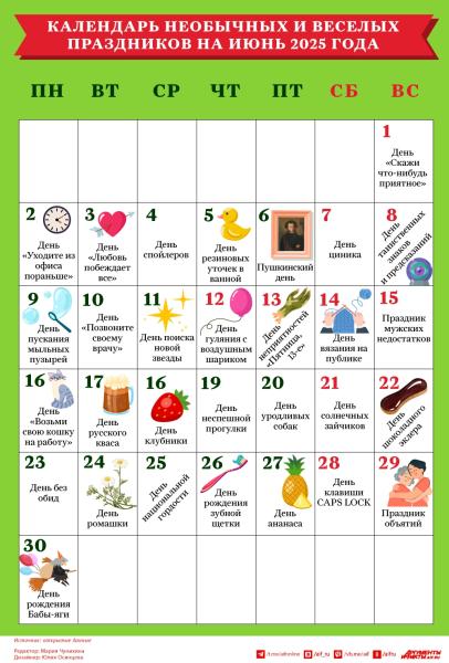 Календарь необычных и веселых праздников июня 2025 года. Инфографика