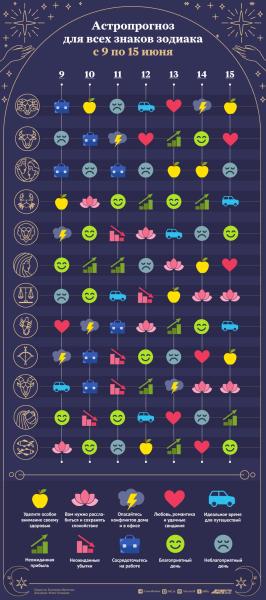 Астрологический прогноз с 9 по 15 июня 2025 года. Инфографика
