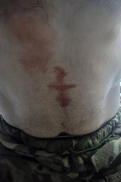 Кровоподтек виде креста, у одного из пациентов «Мифа». Фото из личного архива