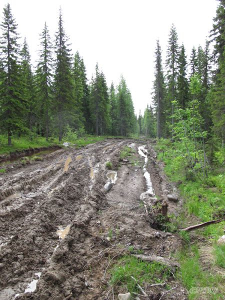 Дорога от лесовозной трассы на Пурнему. Как правило, желающие попасть на побережье Белого моря, бросают здесь машины и идут пешком восемь километров. Машины никто не трогает. А вот человека может тронуть волк либо медведь. Уж комары стопроцентно, тут и к гадалке не ходи. Новые разрекламированные средства мало помогают. Но старорежимный одеколон по-прежнему отбивает у комаров охоту жить. © АиФ / Константин Кудряшов