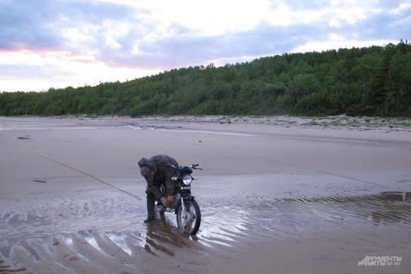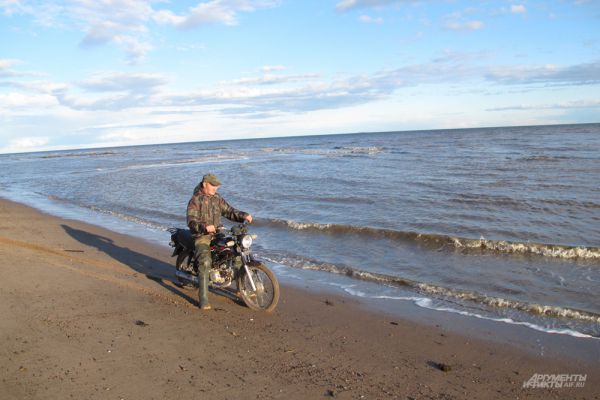 Отлив только начался, но ехать уже можно. Саша Нестеров оценивает дорогу и даёт добро. На протяжении почти половины дороги мы с ним обсуждали рассказы и повести двух поморских писателей – Степана Писахова и Бориса Шергина. Их здесь любят и очень ценят. Да и у нас тоже. Всякий, наверное, видел мультфильмы из цикла «Смех и горе у Бела Моря» про волшебное кольцо, Ульянку, Жужу и апельсин, который пророс в двинской воде. Они сняты по их произведениям. © АиФ / Константин Кудряшов