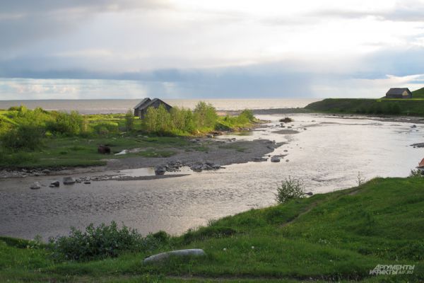 Предполагаемое место высадки десанта. Корабль стоял на траверзе деревни. Поскольку море здесь мелкое даже во время прилива. А вот баркасы вполне могли бы подойти. Но мужики заранее подготовили позиции – по обе стороны реки. Англичан, по сути, взяли в клещи и расстреливали на выбор. © АиФ / Константин Кудряшов