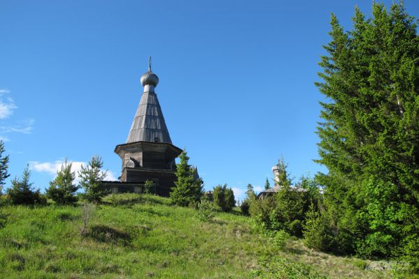 Старейшая на побережье Белого моря деревянная шатровая церковь. Вернее, шатёр – только летний её придел. Зимний чуть правее, и находится в более плачевном состоянии. Посвящена св. Николаю, что вполне очевидно – именно он является небесным покровителем моряков, рыбаков и вообще путешествующих. Построена при Михаиле Фёдоровиче, первом царе из династии Романовых, в 1618 г. Примерно так её смогли бы видеть англичане, осмелься они высадить десант на берегу моря. © АиФ / Константин Кудряшов