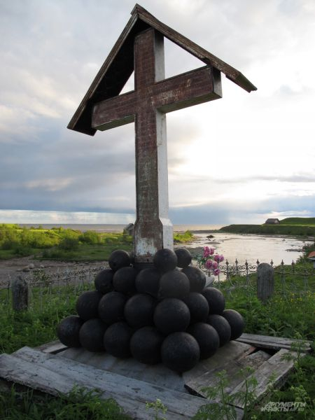 Надпись на лицевой стороне памятника: «Лета 7363 июня 25 дня неприятельский английский пароход, подойдя вечером в 6 часов к селению Лямцы отправя на берег гребные суда с вооруженными людьми. Крестьяне Лямца руководимые рядовым Изырбаевым открыли по приближавшимся огонь из ружей и небольшой пушки и тем принудили их возвратиться к пароходу. Вслед за тем с парохода начали стрелять ядрами, картечью, гранатами и ракетами». © АиФ / Константин Кудряшов