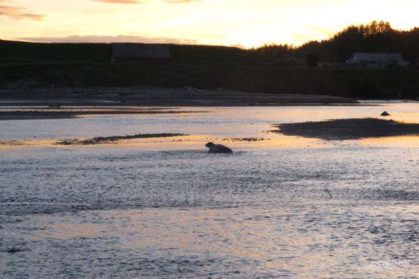 Отлив всё продолжается, и тюлени спасаются в сторону большой воды. Лес рядом, медведь не дремлет. Любопытная история. Сын жителей Пурнемы, Елены и Михаила Кокориных Иван, будучи ещё подростком, как-то спас молодого тюленя, помог ему выбраться на глубину. Эти морские звери часто рвут и портят сети поморов, добывая оттуда навагу. Но после того случая сети Ивана Кокорина тюлени не трогали несколько лет. © АиФ / Константин Кудряшов
