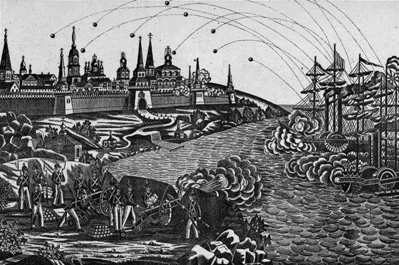 Бомбардировка Соловецкого монастыря английскими пароходами. Фото: Commons.wikimedia.org