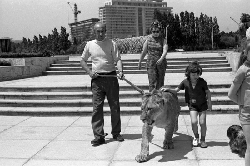 Семья Берберовых на прогулке с прирученным львом Кингом Вторым. 1974 г. Фото: РИА Новости/ Виктор Калинин