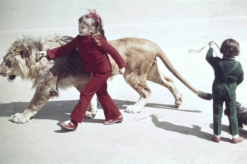 ССР. Ева и Роман Берберовы во время прогулки со львом Кингом. 1973 г. Фото: РИА Новости/ Мирослав Муразов