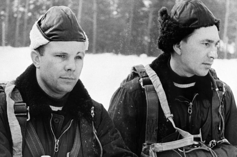 Летчики-истребители ВВС, члены первого отряда космонавтов СССР Юрий Гагарин (слева) и Павел Беляев, во время парашютной подготовки. Фото: РИА Новости