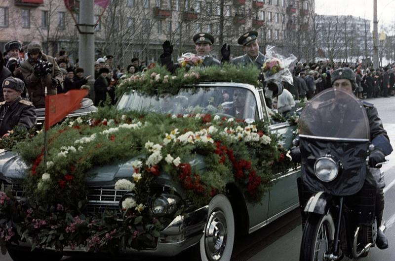 Встреча экипажа космического корабля «Восход-2», космонавтов Алексея Леонова и Павла Беляева (слева). Кортеж на Ленинском проспекте в Москве, март 1965 года. Фото: РИА Новости/ Юрий Сомов