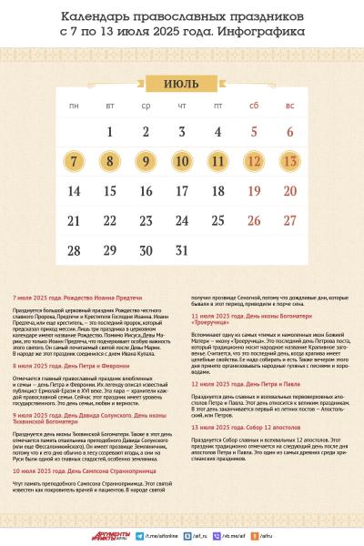 Эта неделя начинается большим праздником — Рождеством Иоанна Предтечи, последнего пророка, которое отмечается в понедельник, 7 июля 2025 года. Этот день совпадает с народным праздником Ивана Купалы. Также на этой неделе, в субботу, 12 июля 2025 года, заканчивается Петров (Апостольский) пост. В этот день празднуется день Петра и Павла.