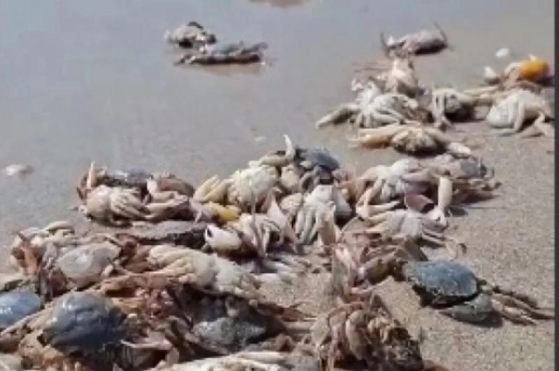 Сообщается, что массовый выброс морских обитателей случился из-за подъема холодной глубинной воды к поверхности моря, что «вымыло» крабов на берег.