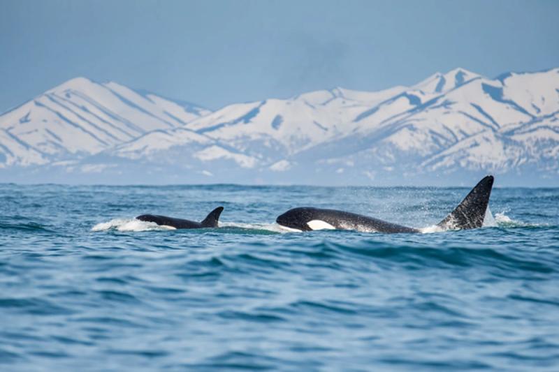 В водах Камчатки можно наблюдать трогательные картины материнской заботы косаток о своём потомстве. Самка косатки вынашивает детёныша около 17 месяцев, и с момента его рождения начинается длительный период воспитания и обучения.