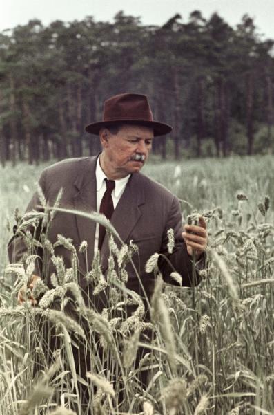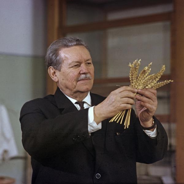Академик Николай Васильевич Цицин изучает свойства нового пшенично-пырейного гибрида. Фото: РИА Новости/ В. Козлов
