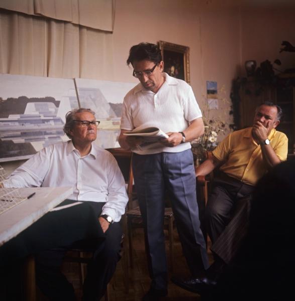 Опытная станция «Снегири» (ранее — Научно-экспериментальное хозяйство «Снегири») — филиал Главного ботанического сада им. Н. В. Цицина РАН, расположенный в селе Рождествено городского округа Истра Московской области. Слева его директор Николай Васильевич Цицин — советский ботаник, селекционер и генетик. Фото: РИА Новости/ Владимир Родионов