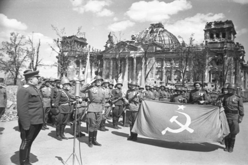 Первый военный комендант Берлина генерал-полковник Николай Эрастович Берзарин во время торжественной церемонии отправки Знамени Победы в Москву. 1945 г. Фото: РИА/ Олег Кнорринг