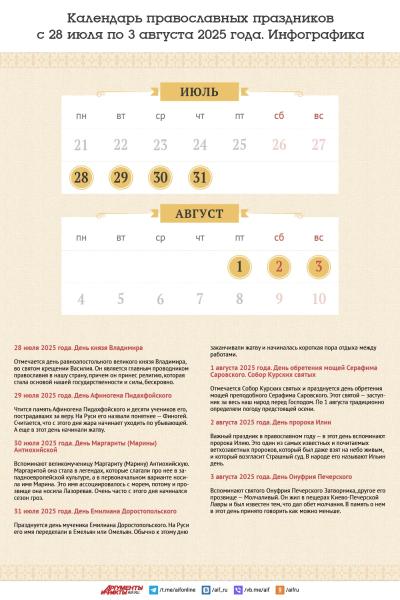 Календарь православных праздников с 28 июля по 3 августа 2025 года