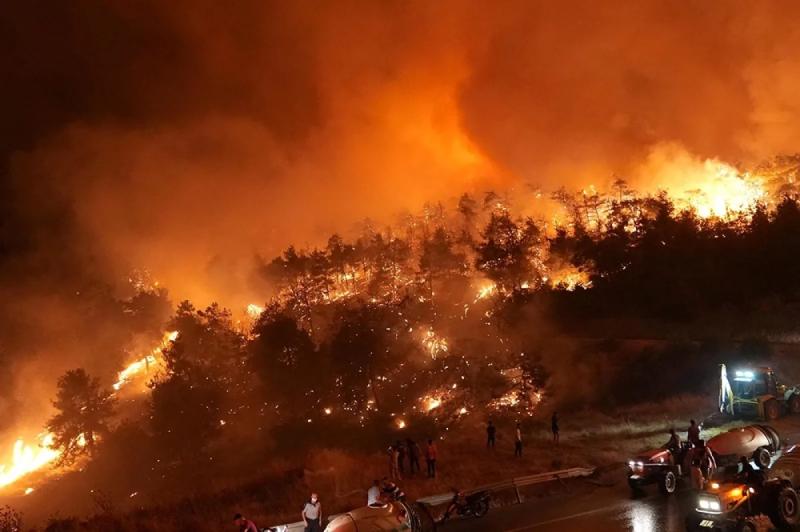 Напомним, что, по предварительной версии, причиной столь сильных пожаров стали: 50-градусная жара, поджоги, оставленные горящие свечи на могилах и искры от строительных работ. Все это вместе привело к тысячам сгоревших гектаров лесов в южной части Турции.