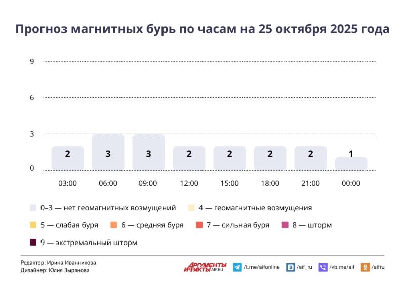 Почасовой прогноз магнитных бурь по московскому времени смотрите в инфографике aif.ru.
