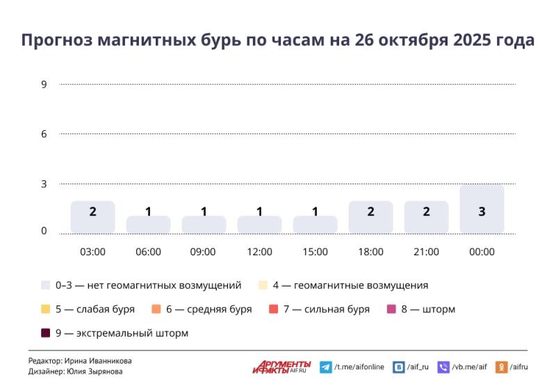 Почасовой прогноз магнитных бурь по московскому времени смотрите в инфографике aif.ru.