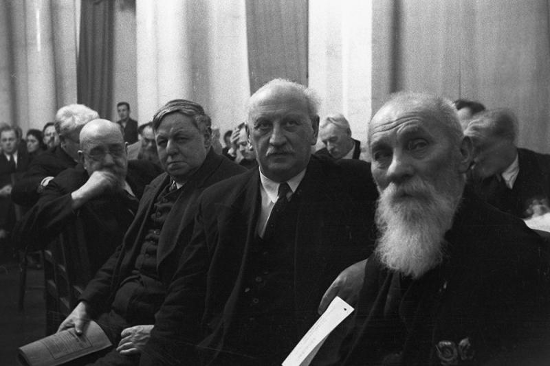 На собрании Академии наук СССР: Алексей Николаевич Бах, Абрам Фёдорович Иоффе, Евгений Викторович Тарле, Александр Сергеевич Орлов. Фото: РИА Новости/ Борис Вдовенко