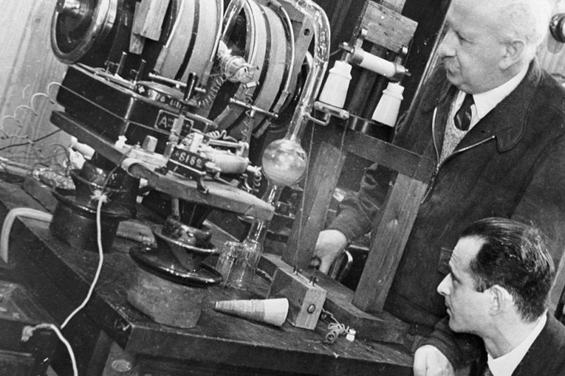 Академик Абрам Иоффе и молодой физик М. Нумеров проводят работу по исследованию изотопов в Ленинградском физико-техническом институте. Фото: РИА Новости/ РИА Новости
