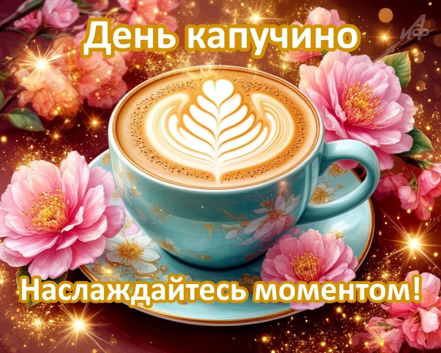 Капучино — один из самых популярных кофейных напитков в мире. Нежная пенка, волшебный аромат и хорошая компания — вот рецепт идеального вечера. Поделитесь открыткой с тем, кто не представляет своей жизни без чашки бодрящего напитка. 8 ноября — праздник для всех любителей капучино.