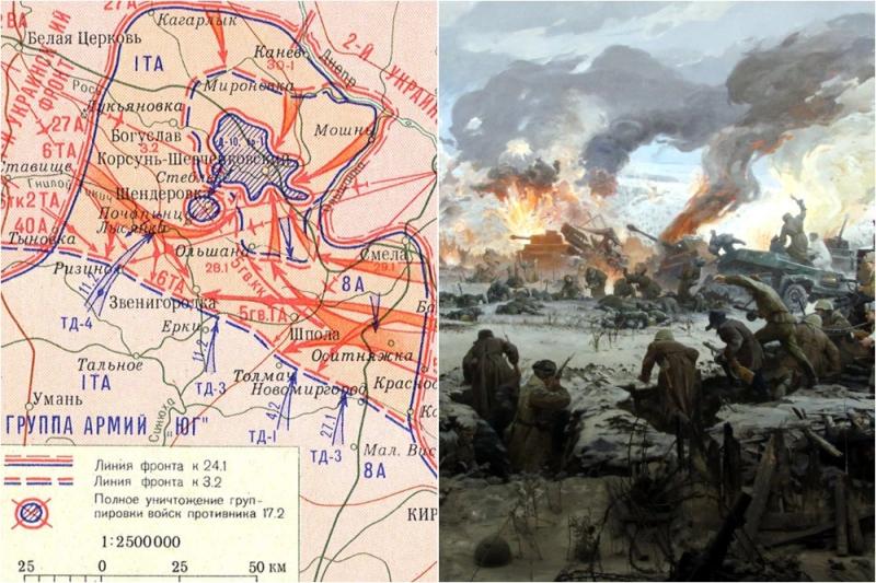 Карта операции; Диорама, музей истории Корсунь-Шевченковской битвы. Фото: Коллаж АиФ