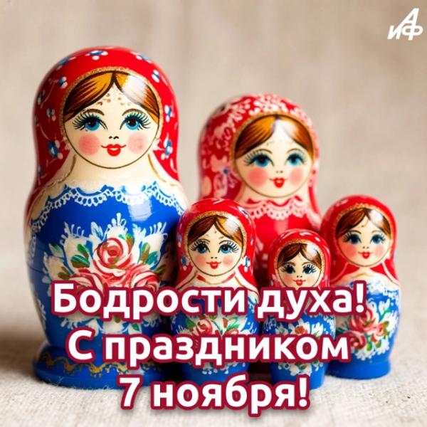 Также эти картинки подойдут для того, чтобы выставить на страницу в соцсети и показать всем, что вы отмечаете 7 ноября. Отправляйте в рабочие чаты, группы и сообщества — всем, с кем хотите поделиться праздничным настроением.