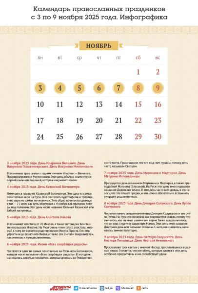 Календарь православных праздников с 3 по 9 ноября 2025 года. Инфографика