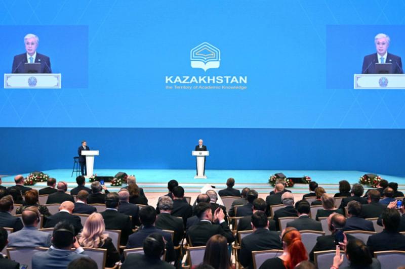 С трибуны форума Токаев заявил, что образование и наука — важнейшие сферы стратегического значения, не имеющие границ и объединяющие все страны мира.