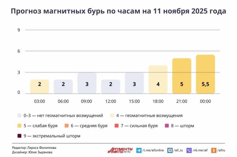 Почасовой прогноз магнитных бурь по московскому времени смотрите в инфографике aif.ru.