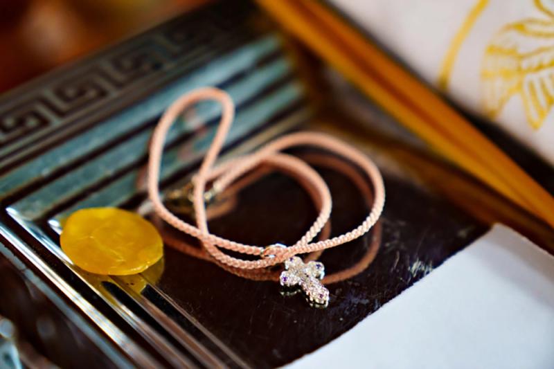 Обязательно нужен нательный крестик. Его надевают в конце обряда, после крещения. Обычно крестик покупает крестный отец, а крестная заботится о рубашке, полотенце и свечах. Крестик может быть золотым, серебряным или простым металлическим, главное, чтобы он был освящен в храме. Повесить крестик можно на цепочку, но для маленького ребенка лучше подойдет достаточно широкая недлинная ленточка, но не шнурок.