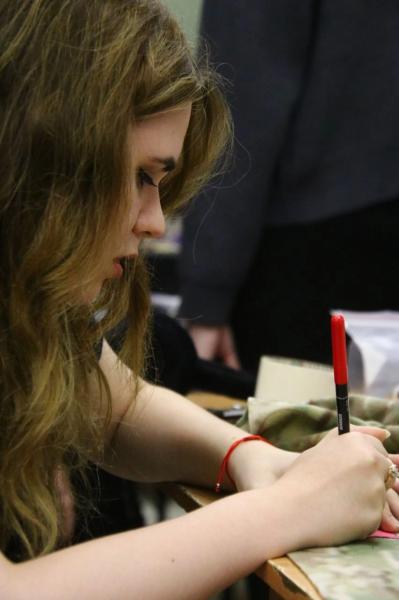 Участницы ансамбля «Триумф» приходят заранее на репетицию, чтобы шить талисманы для бойцов. Фото: из личного архива