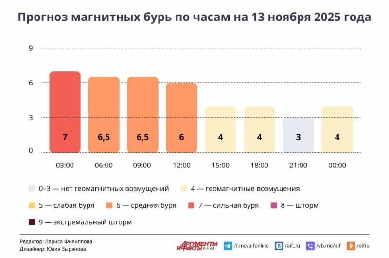 Почасовой прогноз магнитных бурь по московскому времени смотрите в инфографике aif.ru.