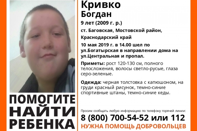 Поисковая ориентировка на Богдана Кривко. Фото: Лиза Алерт