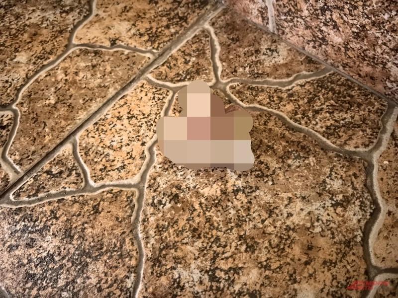 Проходя по лестнице, корреспондент aif.ru увидел жуткие пятна бурого цвета. Это оказалась кровь. Пятна были уже подсохшие и такого большого размера, что фактически это были лужицы. Рядом брошена на пол когда-то белая, но теперь бурая салфетка, возможно, ей вытирали окровавленные руки. Пятна очень странно распределялись. Их форма заставляла предположить, что какой-то истекающий кровью предмет скатывался по ступеньках несколько пролетов. Потом этот предмет подняли и завернули, потому что кровь стала практически незаметной, в виде небольших капель. От осознания того, что катиться по ступенькам могла голова убитого ребенка, становилось страшно и дурно.