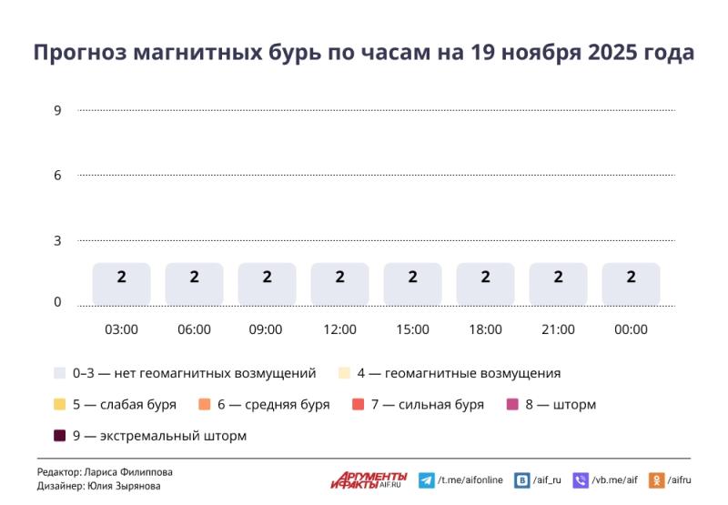 Почасовой прогноз магнитных бурь по московскому времени смотрите в инфографике aif.ru.