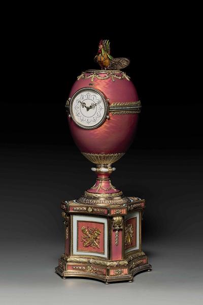 Созданное в 1902 году Карлом Фаберже, как подарок на помолвку барона Эдуарда Ротшильда с Жерменой Альфан. Яйцо больше века хранилось в частной коллекции, но в 2007 году было продано за 18,5 млн долларов. Высокая цена объясняется не только большим количеством золота, алмазов и платины. Внутри яйца спрятаны миниатюрные часы и крошечный золотой петушок, который каждый час открывал клюв и пел.