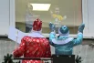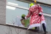 Деды Морозы заглянули в окно каждой палаты, спустившись по тросам с крыши и поднявшись на автовышках. © РИА Новости / Алексей Майшев
